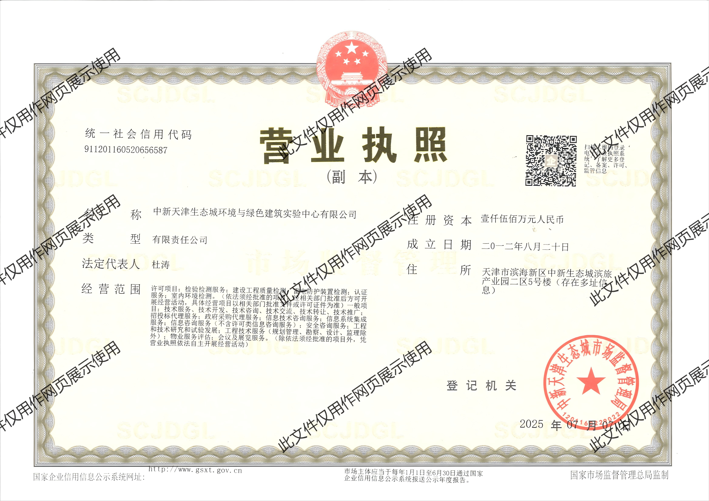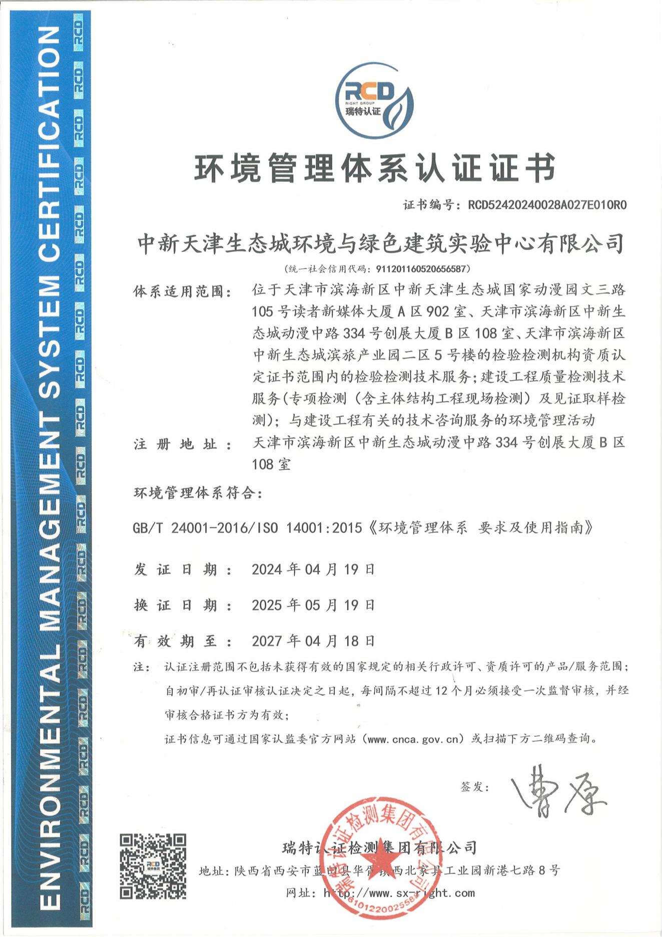 中新天津生態(tài)城環(huán)境與綠色建筑實驗中心有限公司